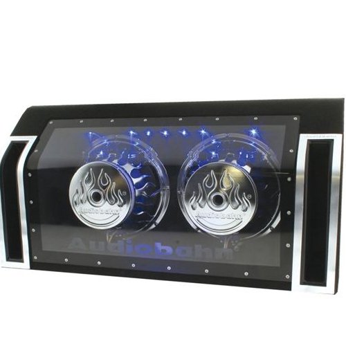 The slot tuned bandpass loaded enclosures feature the same attractive appearance you are used to from Audiobahn with a black carpet finish, a Audiobahn embroidery, and blue interior LED lighting. The subwoofers inside these enclosures are equipped with a IMPP Cone more aggressive operation and a rubAudiobahn ABP122J 800W RMS, Dual 12-Inch Slot Tuned Bandpass Loaded Subwoofer Enclosure Do not Miss!! The slot tuned bandpass loaded enclosures feature the same attractive appearance you are used to from Audiobahn with a black carpet finish, a Audiobahn embroidery, and blue interior LED lighting. The subwoofers inside these enclosures are equipped with a IMPP Cone more aggressive operation and a rub... Audiobahn ABP122J 800W RMS, Dual 12-Inch Slot Tuned Bandpass Loaded Subwoofer Enclosure